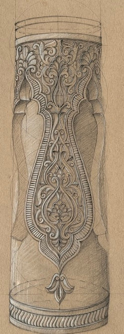 In this class we draw and explore the carved wooden columns of Uzbekistan. These remarkable artworks are architectural elements distinct to Uzbekistan. Carved from local woods such as elm, walnut, and juniper some columns like those of the Juma Masjid date back to the 10th century.